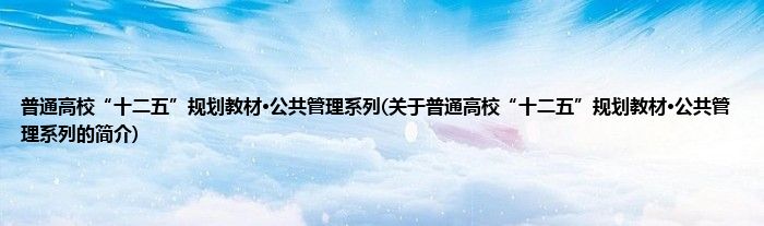 本文关于普通高校“十二五”规划教材·公共管理系列的简介就讲解完毕,希望对大家有所帮助。