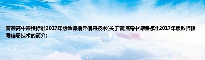 本文关于普通高中课程标准2017年版教师指导信息技术的简介就讲解完毕,希望对大家有所帮助。