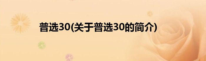 本文关于普选30的简介就讲解完毕,希望对大家有所帮助。