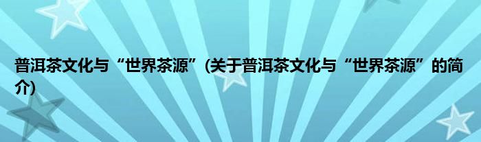 大家好,普洱茶文化与“世界茶源”,关于普洱茶文化与“世界茶源”的简介很多人还不知道,现在让我们一起来看看吧!