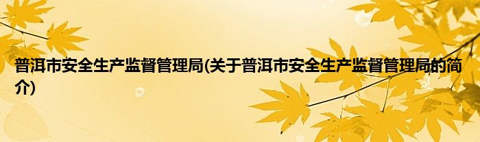 普洱市安全生产监督管理局(关于普洱市安全生产监督管理局的简介)