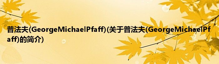 大家好,普法夫,GeorgeMichaelPfaff,关于普法夫,GeorgeMichaelPfaff的简介很多人还不知道,现在让我们一起来看看吧!
