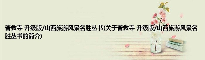 本文关于普救寺 升级版/山西旅游风景名胜丛书的简介就讲解完毕,希望对大家有所帮助。