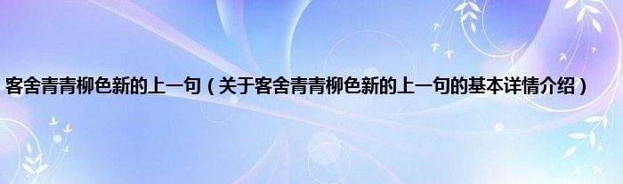 本文关于客舍青青柳色新的上一句的基本详情介绍就讲解完毕,希望对大家有所帮助。