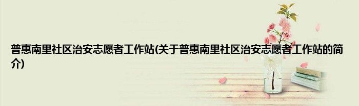 普惠南里社区治安志愿者工作站(关于普惠南里社区治安志愿者工作站的简介)