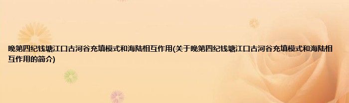 本文关于晚第四纪钱塘江口古河谷充填模式和海陆相互作用的简介就讲解完毕,希望对大家有所帮助。
