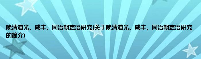 大家好,晚清道光、咸丰、同治朝吏治研究,关于晚清道光、咸丰、同治朝吏治研究的简介很多人还不知道,现在让我们一起来看看吧!