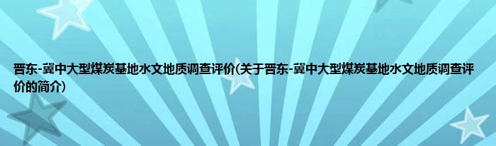 大家好,晋东-冀中大型煤炭基地水文地质调查评价,关于晋东-冀中大型煤炭基地水文地质调查评价的简介很多人还不知道,现在让我们一起来看看吧!
