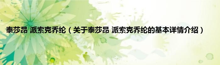 本文关于泰莎昂 派索克乔纶的基本详情介绍就讲解完毕,希望对大家有所帮助。