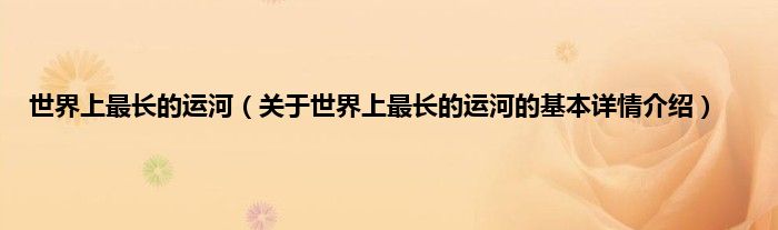 本文关于世界上最长的运河的基本详情介绍就讲解完毕,希望对大家有所帮助。