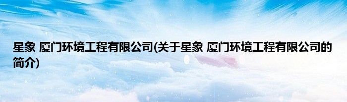 本文关于星象 厦门环境工程有限公司的简介就讲解完毕,希望对大家有所帮助。