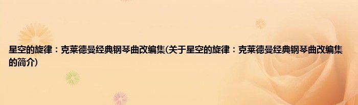 本文关于星空的旋律:克莱德曼经典钢琴曲改编集的简介就讲解完毕,希望对大家有所帮助。