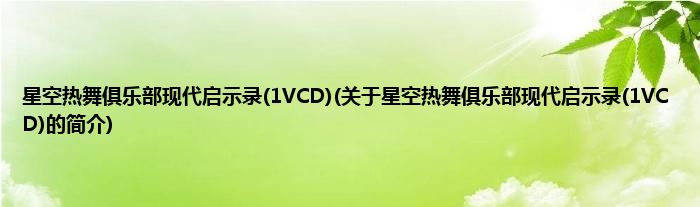 大家好,星空热舞俱乐部现代启示录,1VCD,关于星空热舞俱乐部现代启示录,1VCD的简介很多人还不知道,现在让我们一起来看看吧!