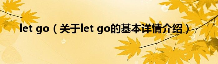大家好我是小蝌蚪,let go,关于let go的基本详情介绍很多人还不知道,那么现在让我们一起来看看吧!