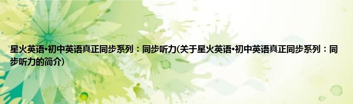 1、 《星火英语·初中英语真正同步系列:同步听力》是天津科学技术出版社出版的一本书。