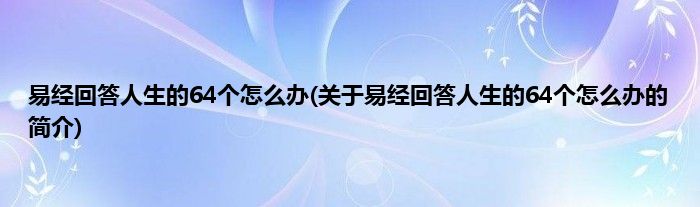 本文关于易经回答人生的64个怎么办的简介就讲解完毕,希望对大家有所帮助。