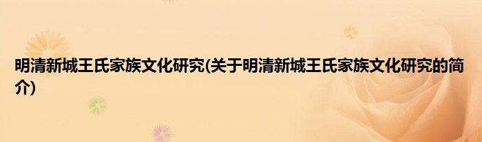 本文关于明清新城王氏家族文化研究的简介就讲解完毕,希望对大家有所帮助。
