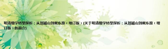 本文关于明清儒学转型探析:从刘蕺山到戴东原﹝增订版﹞的简介就讲解完毕,希望对大家有所帮助。