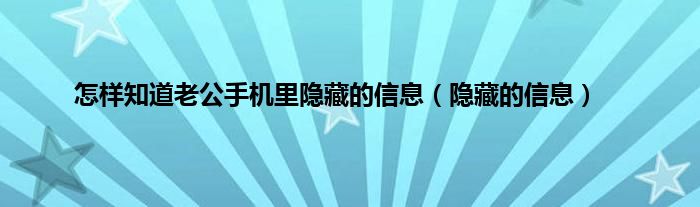 大家好,精选小编来为大家解答以上问题。怎样知道老公手机里隐藏的信息,隐藏的信息很多人还不知道,现在让我们一起来看看吧!