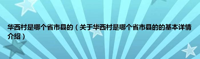 华西村是哪个省市县的(关于华西村是哪个省市县的的基本详情介绍)