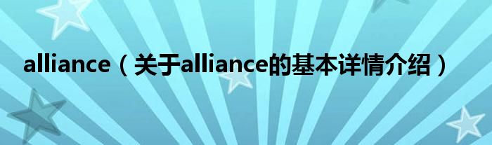 本文关于alliance的基本详情介绍就讲解完毕,希望对大家有所帮助。