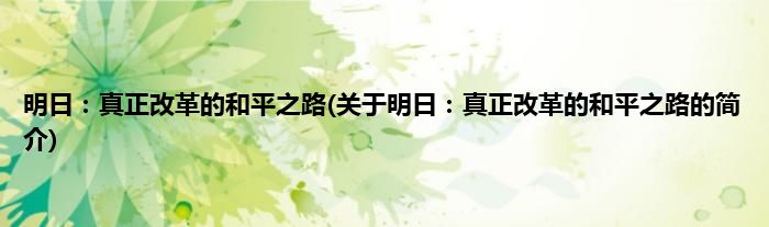 大家好,明日:真正改革的和平之路,关于明日:真正改革的和平之路的简介很多人还不知道,现在让我们一起来看看吧!