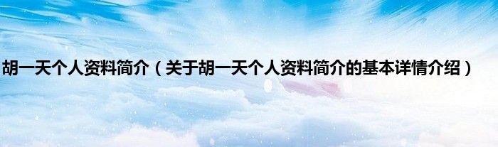 胡一天个人资料简介(关于胡一天个人资料简介的基本详情介绍)