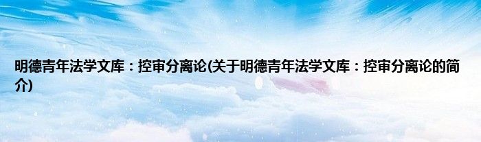 本文关于明德青年法学文库:控审分离论的简介就讲解完毕,希望对大家有所帮助。