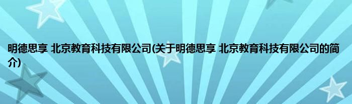 本文关于明德思享 北京教育科技有限公司的简介就讲解完毕,希望对大家有所帮助。