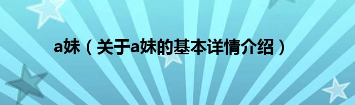 本文关于a妹的基本详情介绍就讲解完毕,希望对大家有所帮助。