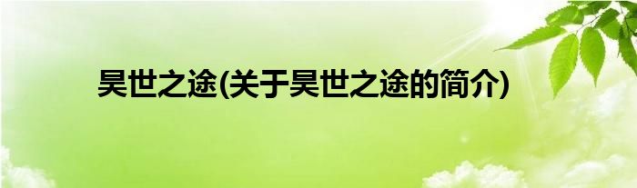 本文关于昊世之途的简介就讲解完毕,希望对大家有所帮助。