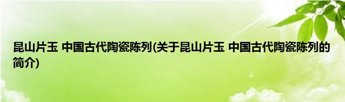 本文关于昆山片玉 中国古代陶瓷陈列的简介就讲解完毕,希望对大家有所帮助。