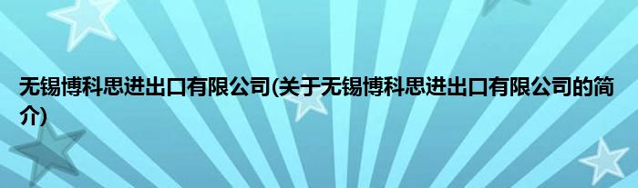 无锡博科思进出口有限公司(关于无锡博科思进出口有限公司的简介)