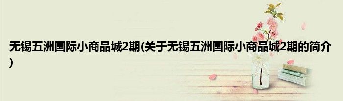 本文关于无锡五洲国际小商品城2期的简介就讲解完毕,希望对大家有所帮助。