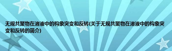 本文关于无规共聚物在溶液中的构象突变和反转的简介就讲解完毕,希望对大家有所帮助。
