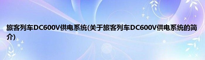 大家好,旅客列车DC600V供电系统,关于旅客列车DC600V供电系统的简介很多人还不知道,现在让我们一起来看看吧!