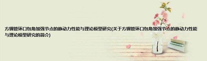 本文关于方钢管环口包角加强节点的静动力性能与理论模型研究的简介就讲解完毕,希望对大家有所帮助。