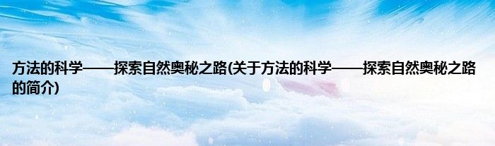 本文关于方法的科学——探索自然奥秘之路的简介就讲解完毕,希望对大家有所帮助。