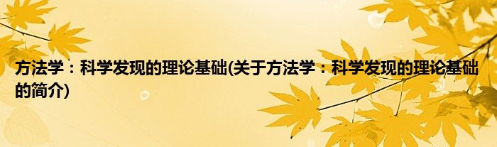 大家好,方法学:科学发现的理论基础,关于方法学:科学发现的理论基础的简介很多人还不知道,现在让我们一起来看看吧!