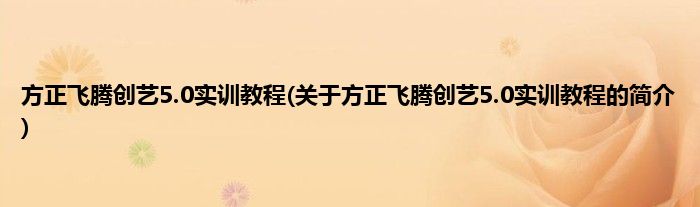 大家好,方正飞腾创艺5.0实训教程,关于方正飞腾创艺5.0实训教程的简介很多人还不知道,现在让我们一起来看看吧!