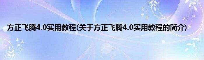 大家好,方正飞腾4.0实用教程,关于方正飞腾4.0实用教程的简介很多人还不知道,现在让我们一起来看看吧!