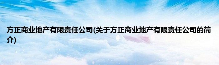 大家好,方正商业地产有限责任公司,关于方正商业地产有限责任公司的简介很多人还不知道,现在让我们一起来看看吧!