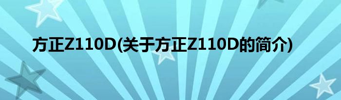 本文关于方正Z110D的简介就讲解完毕,希望对大家有所帮助。