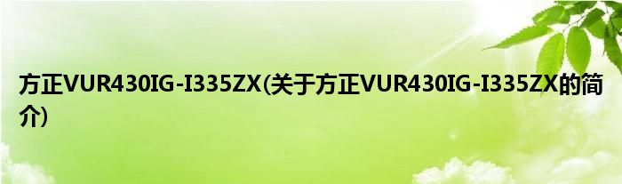 本文关于方正VUR430IG-I335ZX的简介就讲解完毕,希望对大家有所帮助。