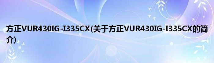 本文关于方正VUR430IG-I335CX的简介就讲解完毕,希望对大家有所帮助。