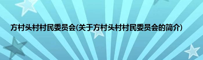 本文关于方村头村村民委员会的简介就讲解完毕,希望对大家有所帮助。