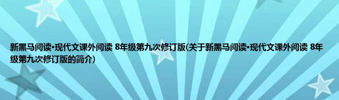 新黑马阅读·现代文课外阅读 8年级第九次修订版(关于新黑马阅读·现代文课外阅读 8年级第九次修订版的简介)