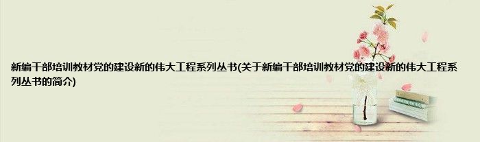 大家好,新编干部培训教材党的建设新的伟大工程系列丛书,关于新编干部培训教材党的建设新的伟大工程系列丛书的简介很多人还不知道,现在让我们一起来看看吧!