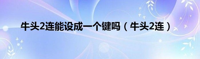 大家好,精选小编来为大家解答以上问题。牛头2连能设成一个键吗,牛头2连很多人还不知道,现在让我们一起来看看吧!
