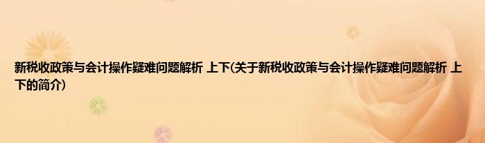 大家好,新税收政策与会计操作疑难问题解析 上下,关于新税收政策与会计操作疑难问题解析 上下的简介很多人还不知道,现在让我们一起来看看吧!